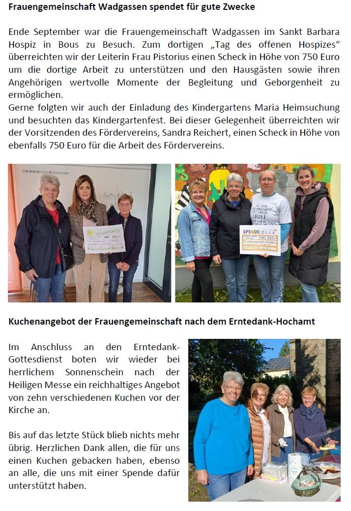 Unterstützung, aber auch an in Not geratene Wadgasser Familien wurde