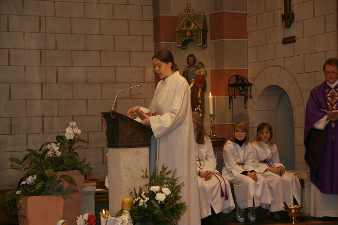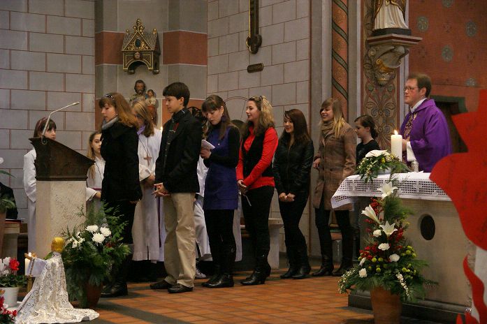 Die Firmlinge ziehen mit ihren Katecheten in die Kirche ein