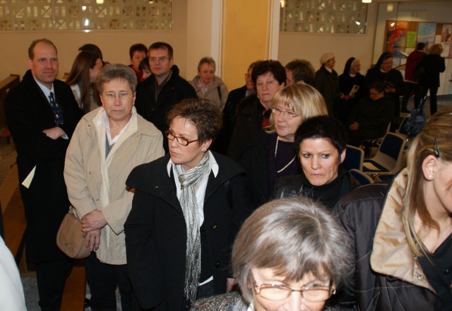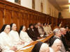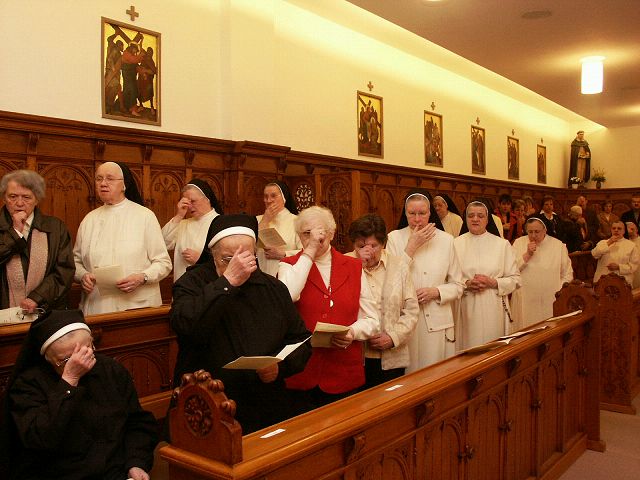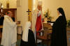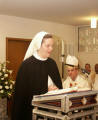 19. März 2009: Erste Profess von Sr. M. Ursula HertewichAm 19. März, dem Hochfest des Heiligen Josef, legte die 2006 in den Orden der Arenberger Dominikanerinnen eingetretene Wadgasser Apothekerin, Dr. Ursula Hertewich, ihre erste Profess als Mitglied dieser Kongregation ab. Das feierliche zeitliche Versprechen (für zunächst ein Jahr) vor Weihbischof Jörg Michael Peters, der Vikarin des Dominikanerinnenkonvents, Schwester M. Agnes, der Novizenmeisterin, Schwester M. Scholastika, zahlreichen Geistlichen und überaus vielen Gottesdienstbesuchern erfolgte im Rahmen eines feierlichen Pontifikalamtes in der Arenberger Klosterkirche Sankt Josef. Zahlreiche Gäste aus unserer Seelsorgeeinheit Wadgassen-Differten-Friedrichweiler und aus benachbarten Pfarreien waren dem Aufruf gefolgt, der wichtigen Lebensentscheidung der jungen und so überaus beliebten Ordensfrau beizuwohnen, für sie zu beten und Gottes Segen zu erflehen, darunter neben ihren Eltern und Familienangehörigen Dechant Volker Teklik, Kaplan Michael Meiser, Diakon Josef Britz, Seminarist Florian Trampisch, Ordensschwestern aus Wadgassen und Differten sowie die beiden Pfarrgemeinderatsvorsitzenden Waltraud Malter und Ingeborg Klinkner. Auch der aus Wadgassen stammende Pastor Theo Welsch sowie der frühere Wadgasser Pastor Friedhelm Müller nahmen neben weiteren Konzelebranten aus dem Dominikanerorden und aus dem Bereich der Koblenzer Weltgeistlichen an dem feierlichen Gottesdienst in der überfüllten Klosterkirche teil. (Bilder zum Vergrößern anklicken) |